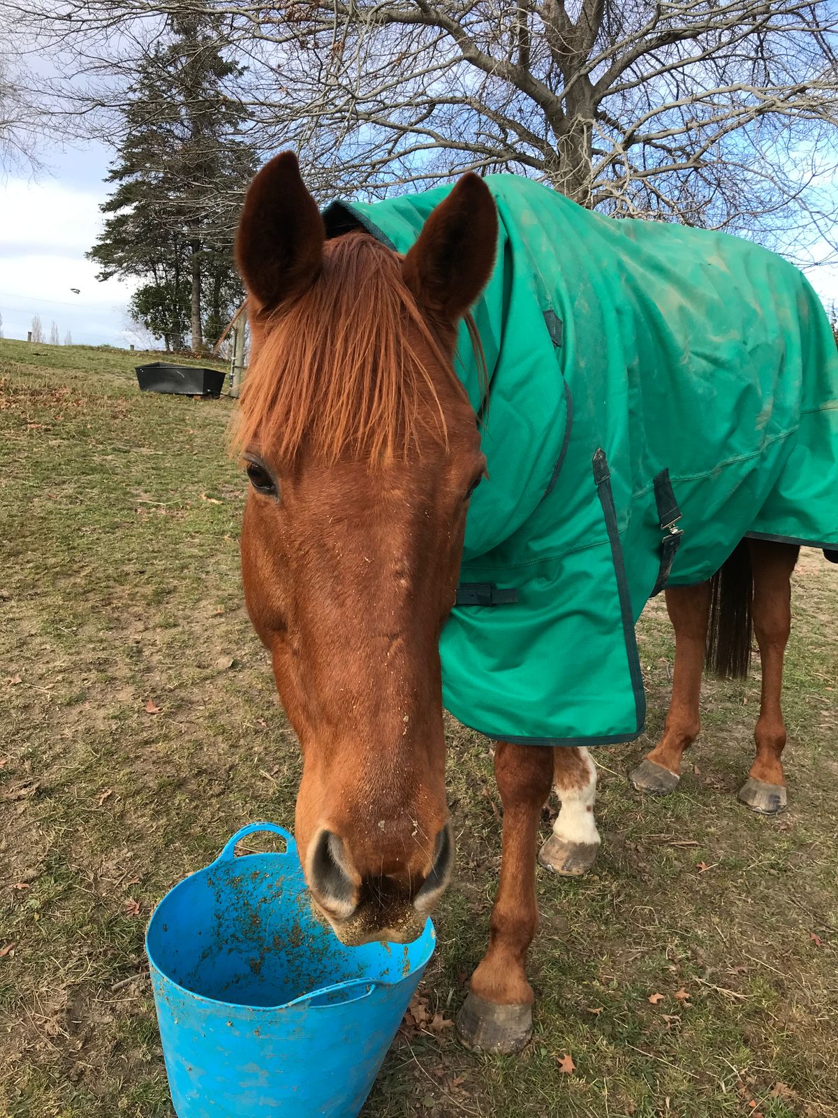 I was nervous about how this would work because our grazer was taking her horse away for 10 weeks and Gracie would be alone for a week before we were able to get a friend for her. I was surprised when she happily came over to eat it off a carrot or even lick it out of my hand. and when her paddock mate left, she only watched before resuming to graze.